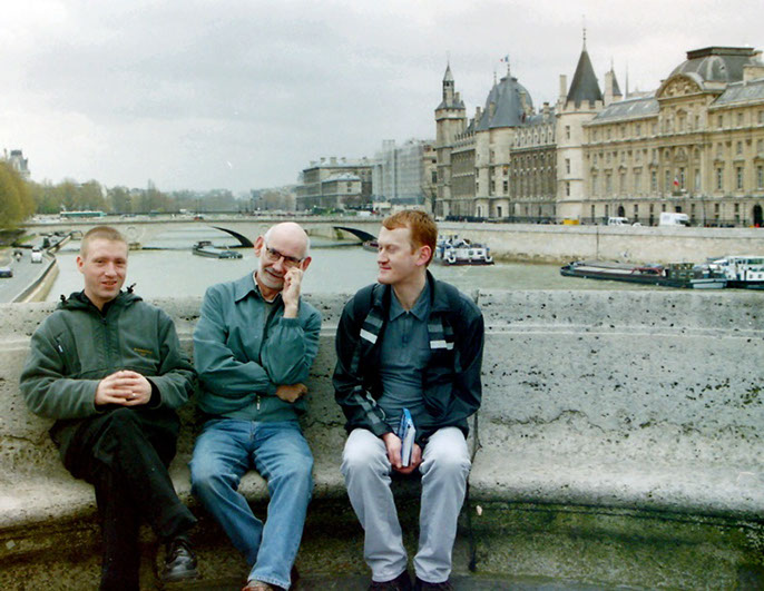 Taking a breather on the Pont Neuf – Tom , Jim, Trevor