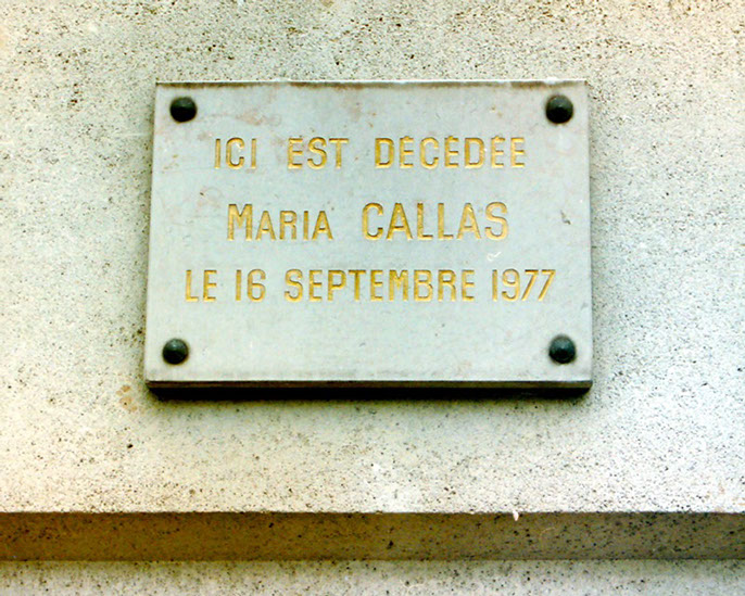 Close-up of the plaque (Maria Callas died here on 16th September 1977)